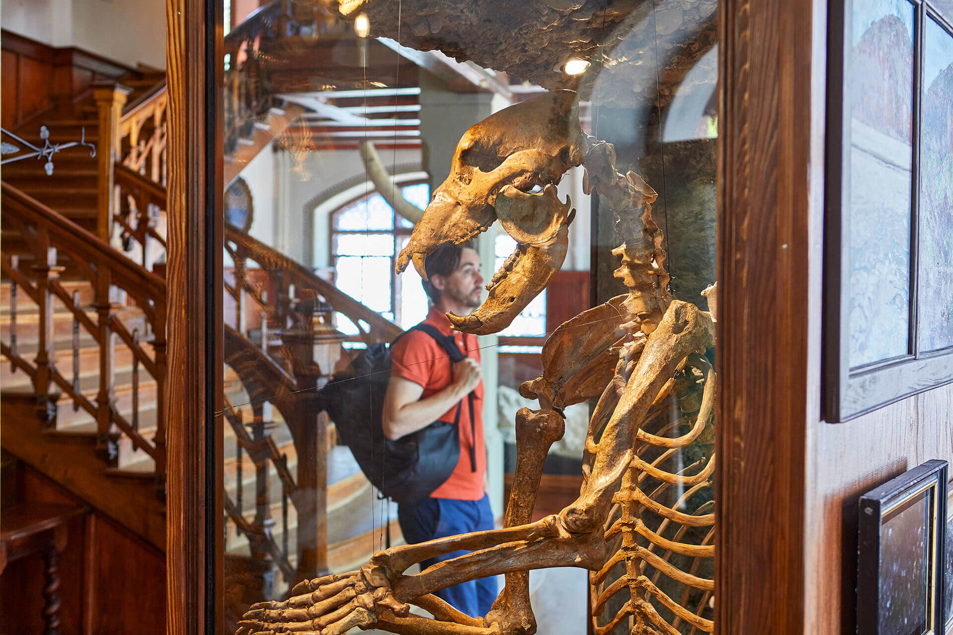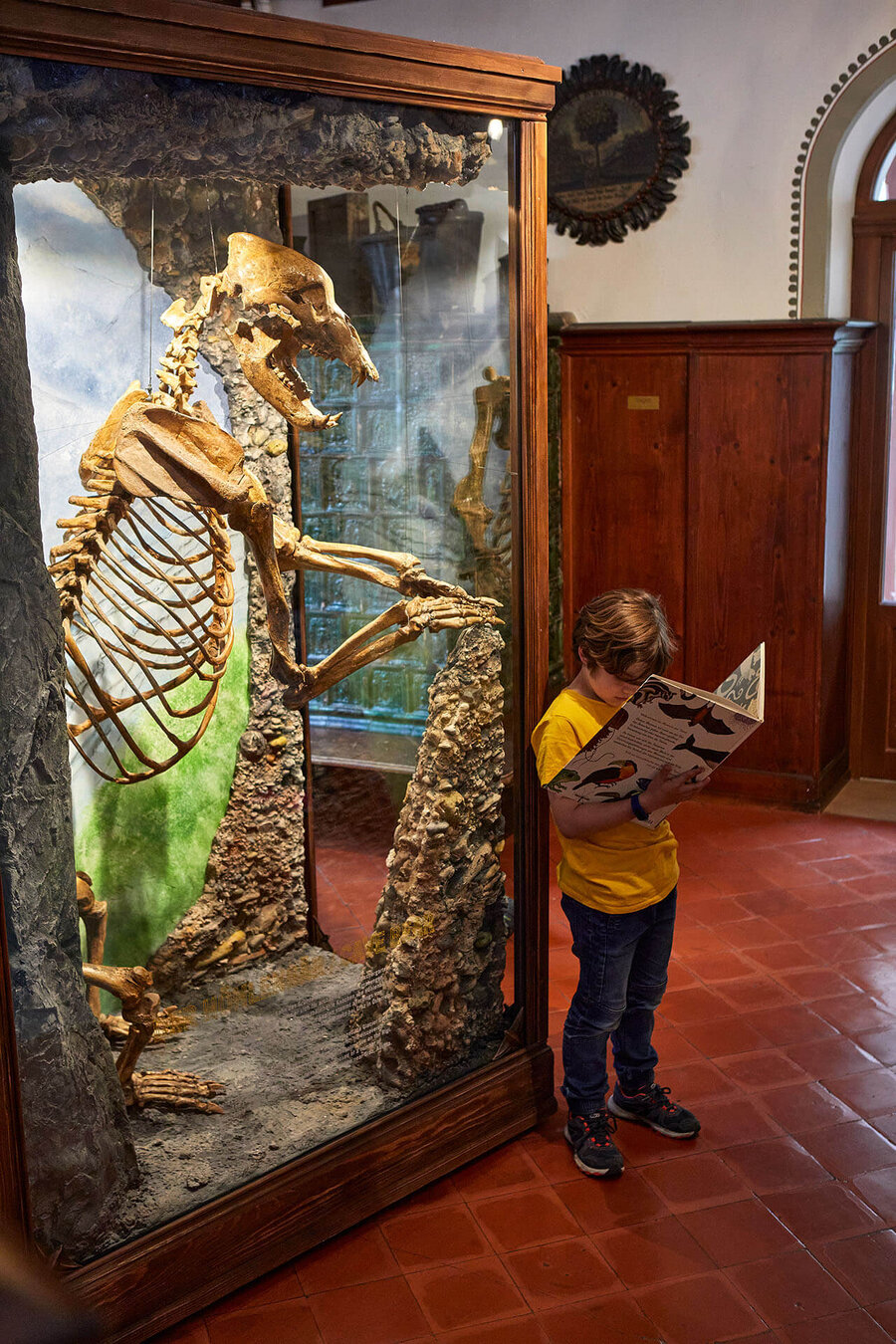 Als harmloser Pflanzenfresser lebte der Höhlenbär bis kurz vor der letzten Eiszeit in den Alpen. Wilhelm Amrein-Küpfer, Sohn des Gletschergarten-Gründerpaars und fanatischer Urgeschichts-Forscher, fand Knochen dieses ausgestorbenen Tieres in der Höhle Steigelfadbalm an der Rigi. Das im Museum ausgestellte Skelett stammt allerdings von verschiedenen Tieren, deren Knochen in der Drachenhöhle Mixnitz bei Graz in Österreich gefunden wurden.
