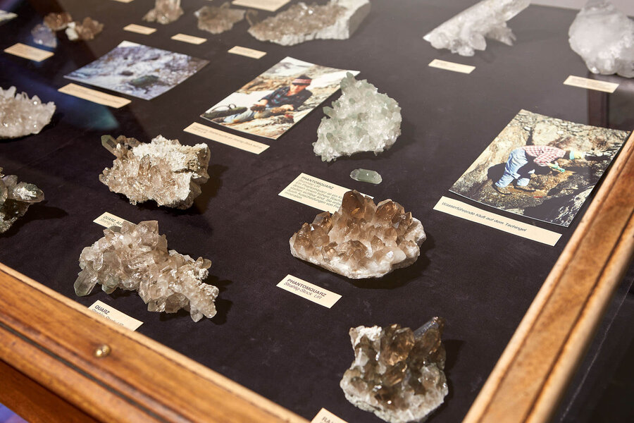 Sie bewundern funkelnde Kristalle und seltene Mineralien aus den Schweizer Alpen und aller Welt.