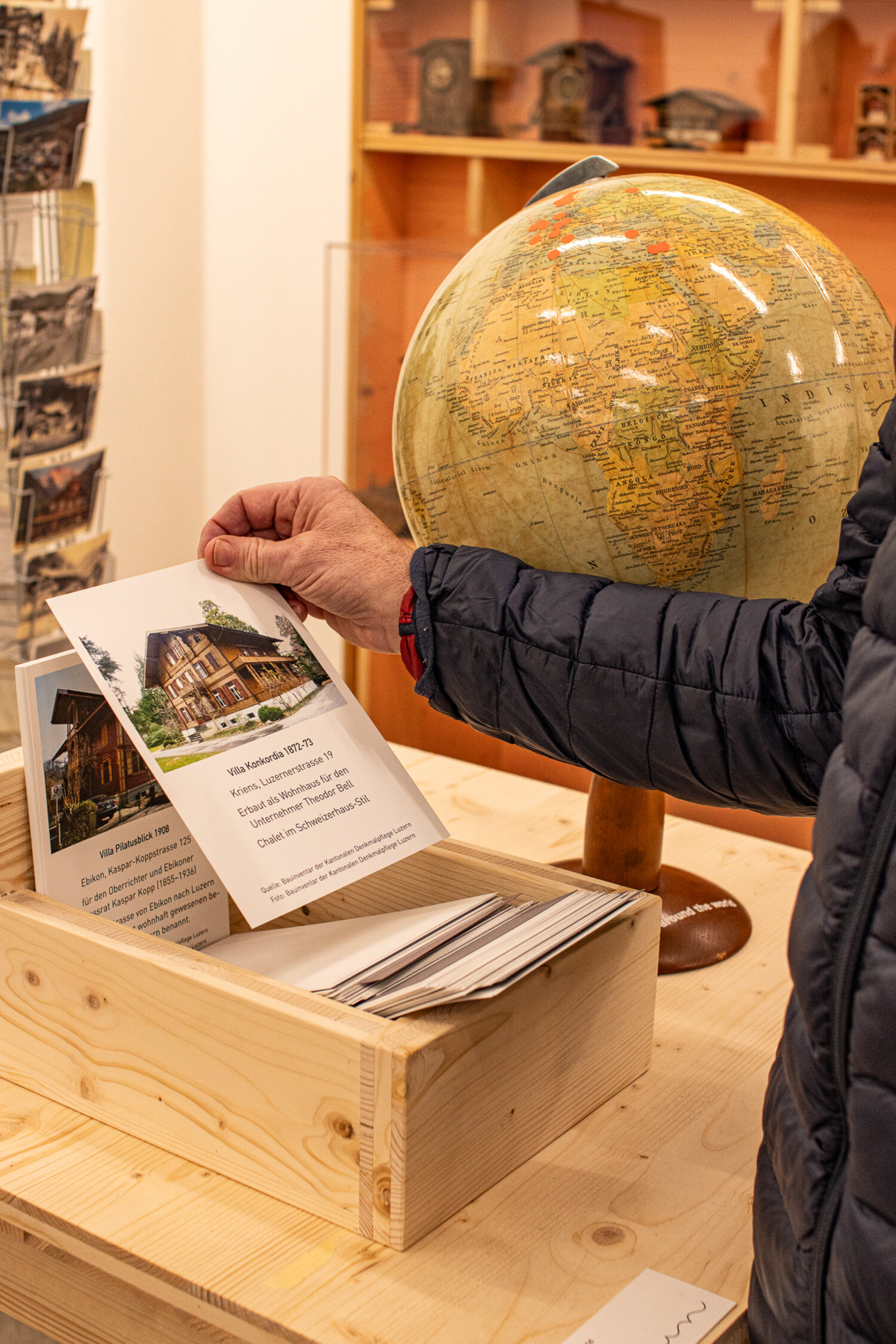 Mit kitschigen Souvenirs, über 100 Jahre alten Modell-Chalets und Bestellkatalogen von Chalet-Fabriken erzählt die Ausstellung «Chalet – Vom Mythos zur modernen Baukultur» die Erfolgsgeschichten des Ferienklischees und ergänzt sie für den Gletschergarten mit lokalen Aspekten.